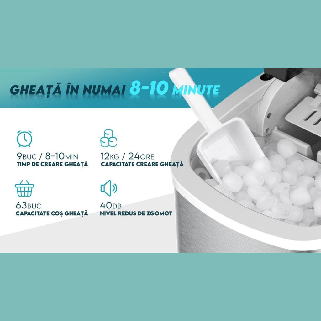 - Produce până la 12 kg de gheață pe zi – suficientă pentru întreaga familie sau un weekend cu prietenii.