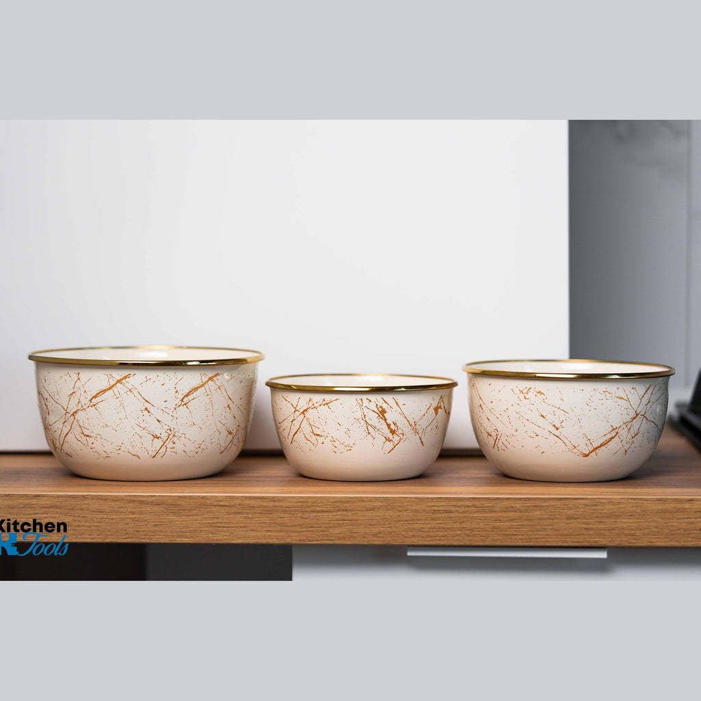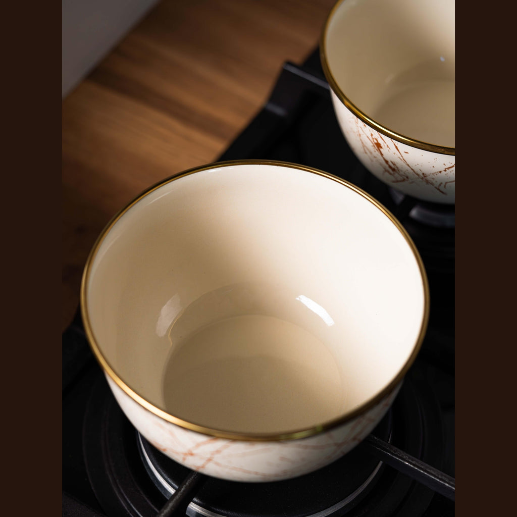 Adaugă un plus de rafinament și utilitate bucătăriei tale cu bolul emailat bej – o alegere practică și elegantă pentru servire sau preparare!
