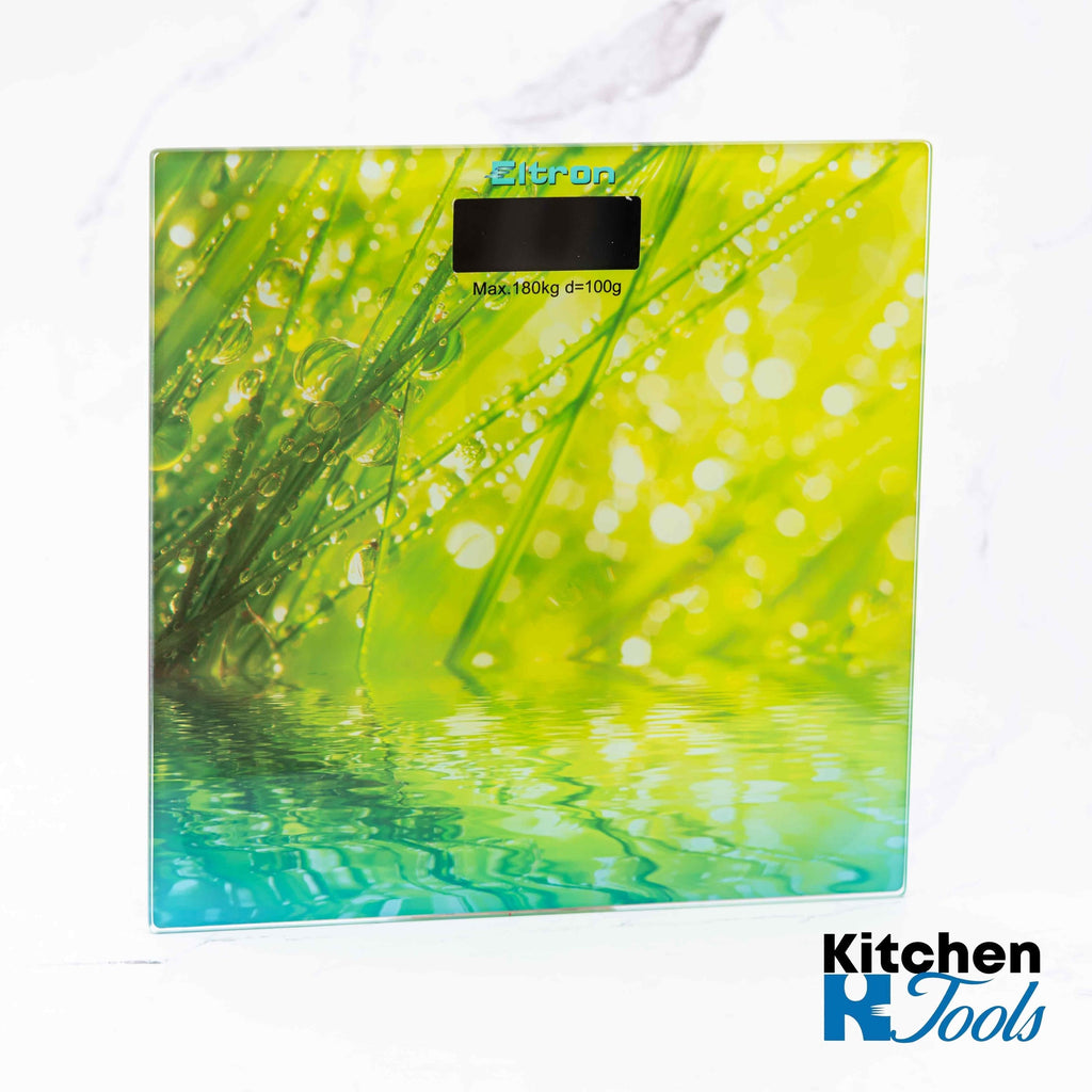 Cântarul de baie Eltron are o capacitate de 180 kg, dimensiune de 30 cm, greutate minimă afișată de 100 g, afișaj LCD pentru economisirea energiei, pornire automată la urcarea pe cântar, grosimea sticlei de 6 mm, funcție de oprire automată și indicator de descărcare a bateriei. Funcționează cu 2 baterii AAA (nu sunt incluse).