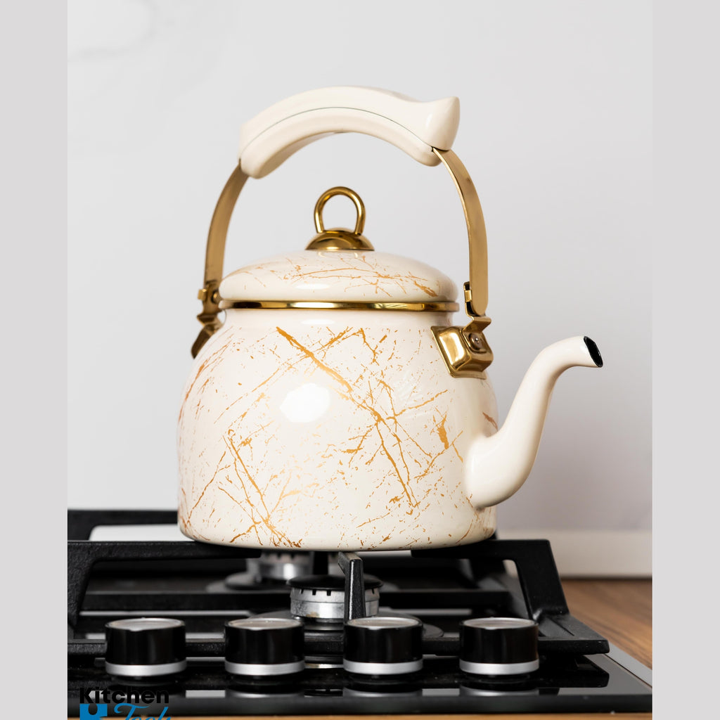 Descoperă ceainicul emailat de 2,5 litri, un accesoriu esențial pentru orice bucătărie modernă. Acest ceainic combină designul clasic cu performanța de top, oferindu-ți o experiență de preparare a ceaiului sau a altor băuturi calde, pe care o vei îndrăgi zi de zi.
