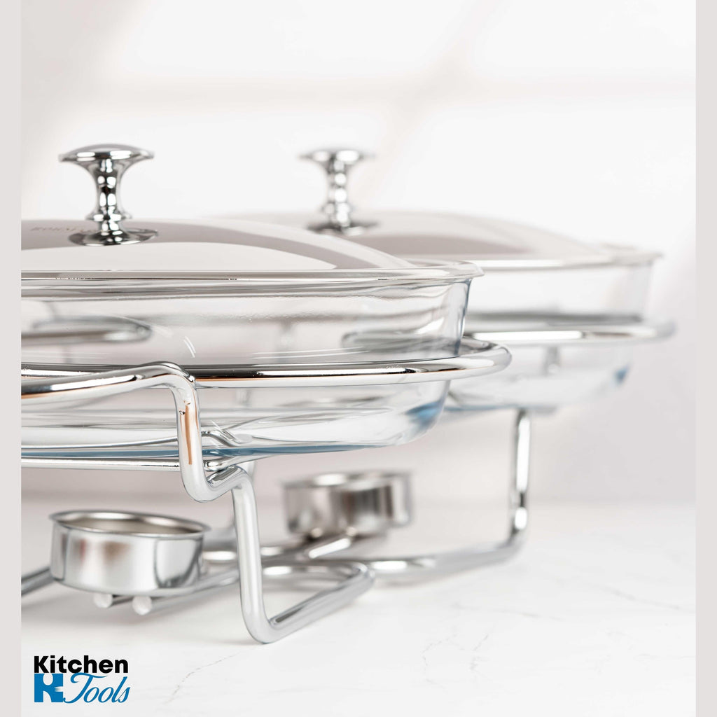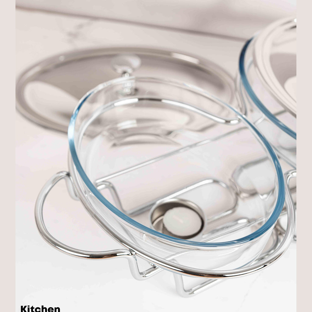 Alimentele pot fi pregătite direct în vas, apoi servite și păstrate în același recipient, deoarece sticla (doar sticla) rezistă la temperaturi cuprinse între -25 °C și +230 °C. Vasul are un capac din inox. Suportul din inox are inclus un rezervor pentru o lumânare tip pastilă (1 buc. inclusă), pentru menținerea caldă a mâncării servite. Este recomandat pentru servirea supelor.
