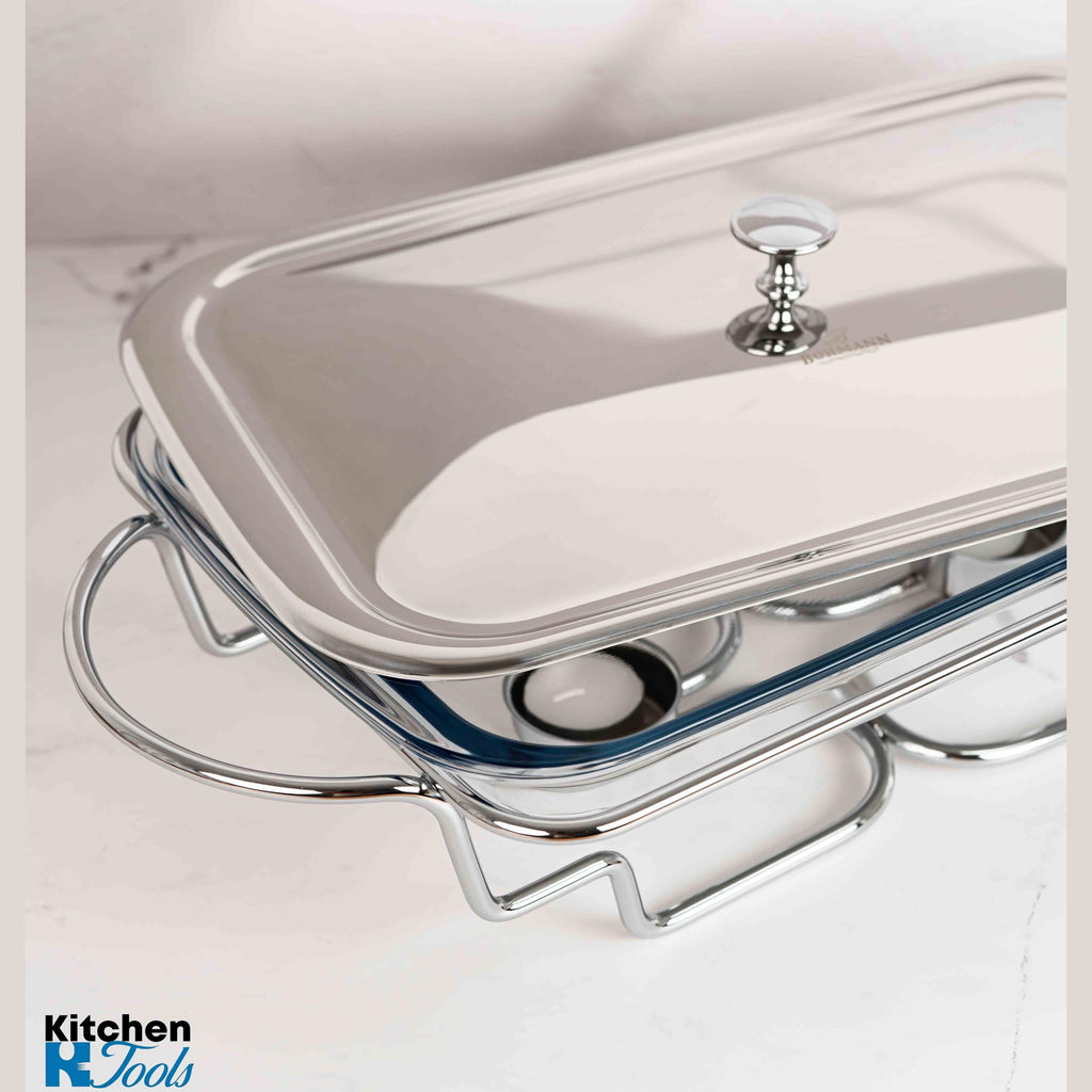Vasul de incalzit 3L este fabricat din sticla termorezistenta si otel inoxidabil de cea mai buna calitate. Poate fi folosit atat in cuptorul cu microunde cat si in cuptor, indiferent de sursa de caldura folosita (gaz, electric). Se pot pregati alimentele direct in el, sa fie servit si apoi pastrat in acelasi vas deoarece sticla (doar sticla) rezista la temperaturi cuprinse intre -25 grade Celsius si +230 grade Celsius. Vasul are un capac din inox. Suportul inox are inclus un rezervor pentru o lumanare tip pastila (inclus 1 buc) pentru mentinerea calda a mancarii servite. Se recomanda pentru servirea supelor.
