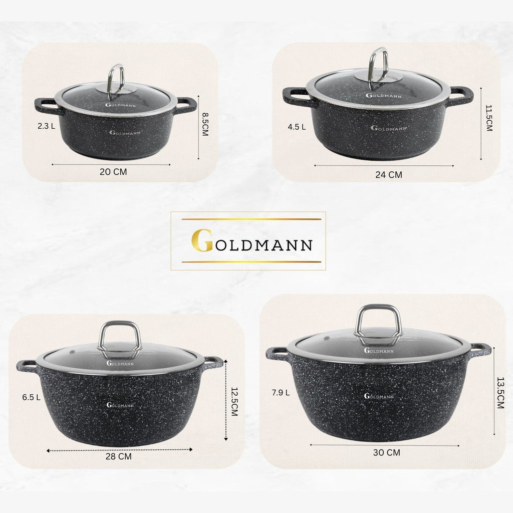 - Acoperire ceramică marmorată: Suprafața interioară a cratiței este acoperită cu un strat ceramic marmorat, oferind o rezistență crescută la lipire și facilitând gătitul fără grăsimi.