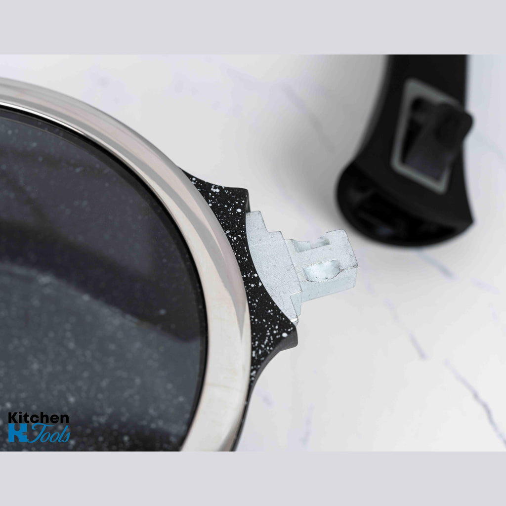 - Mânere detașabile: Mânerele detașabile sunt un plus practic, permițându-vă să treceți ușor cratița din cuptor la masă sau să o depozitați în spații restrânse. Această funcție adaugă un nivel suplimentar de comoditate și versatilitate.