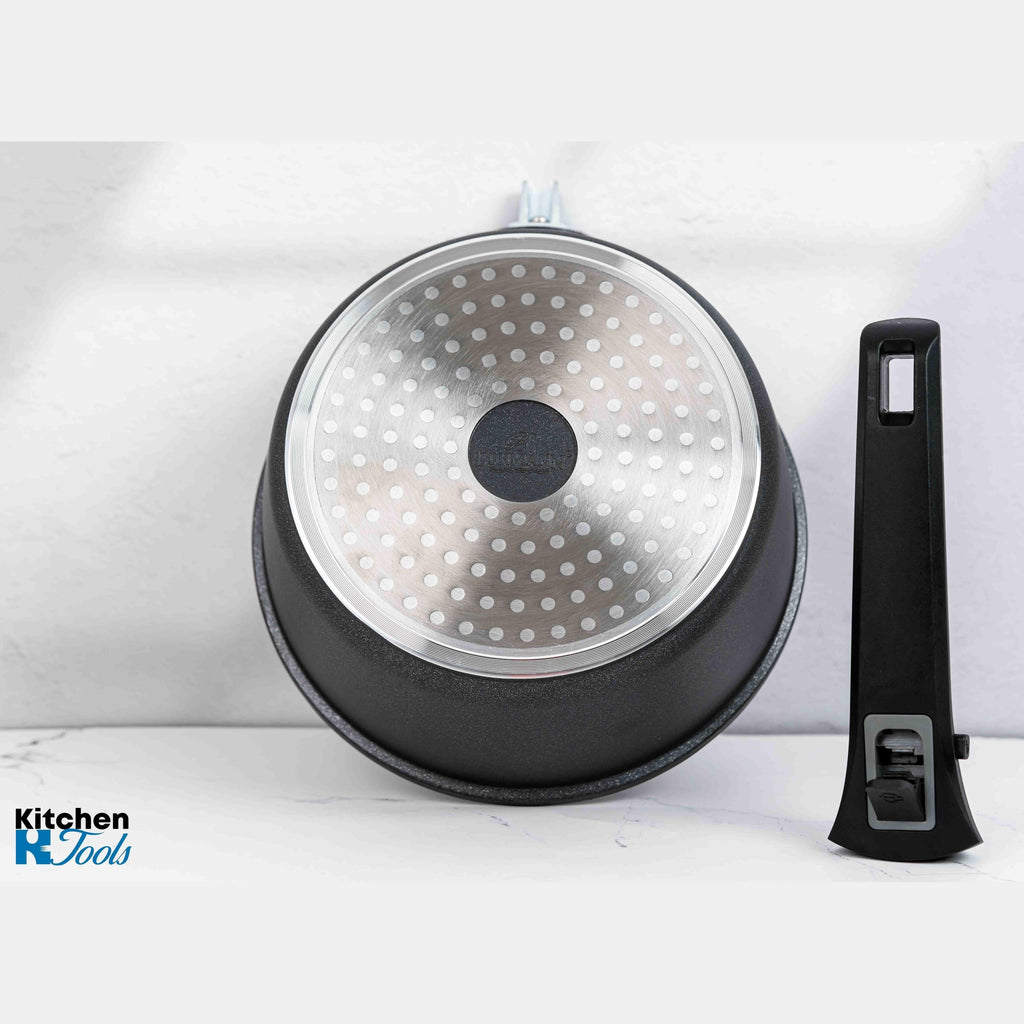 Experimentați bucuria gătitului fără efort cu cratița noastră din aluminiu turnat, o alegere ideală pentru bucătăria dvs. Această cratiță versatilă este proiectată pentru a vă oferi o experiență culinară plăcută și eficientă, indiferent de tipul de plită pe care îl aveți, inclusiv plitele cu inducție. Cu mânerele sale detașabile și suprafața antiaderentă, această cratiță este partenerul perfect în aventurile dvs. gastronomice.