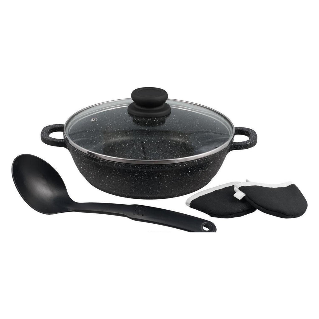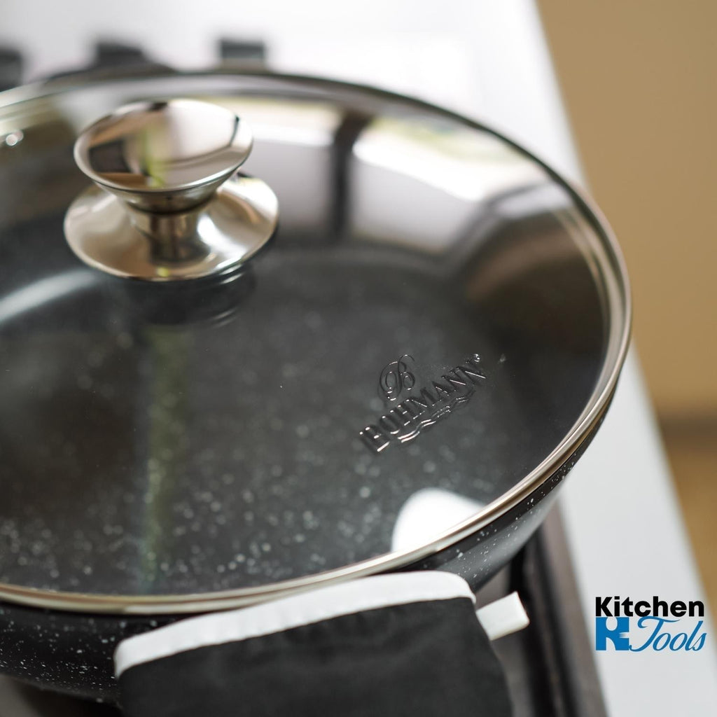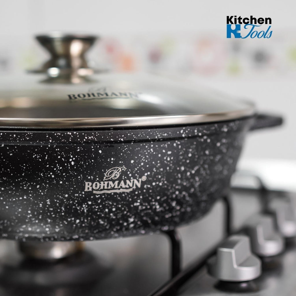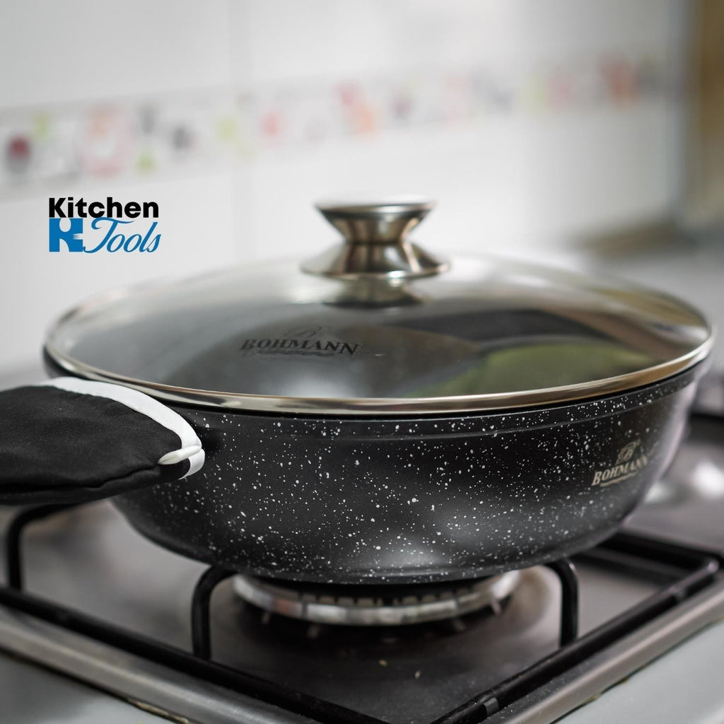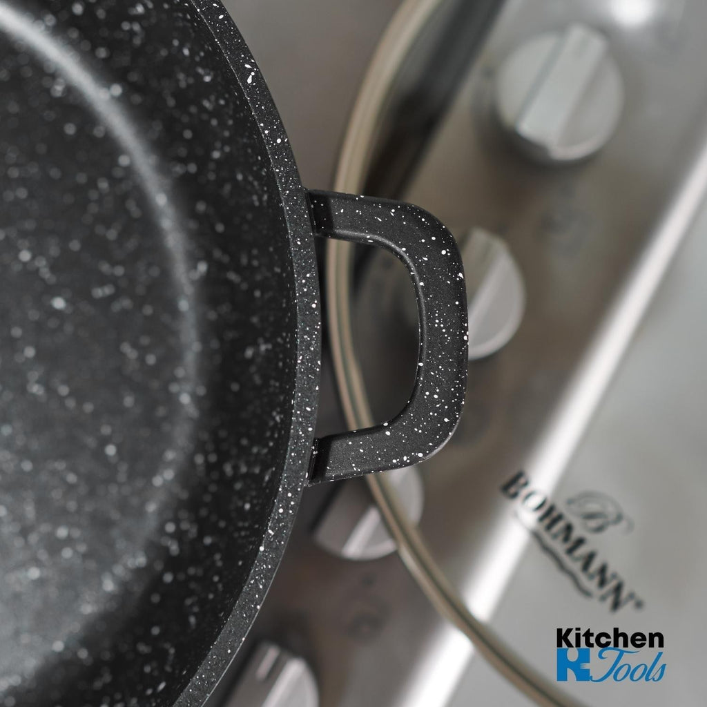 Cratița cu capac și cadou spatulă din silicon Bohmann este un model de calitate și practic, care va atrage chiar și cei mai exigenți clienți. Cu ajutorul acesteia puteți realiza orice idee culinară, ușor și simplu. Este ideală pentru sotarea cărnii și a legumelor, precum și pentru prepararea de sosuri și dressinguri groase. Cratița este realizată din aluminiu turnat, ușor și durabil. Acest material se încălzește rapid și uniform, astfel încât timpul de gătit este mult redus.