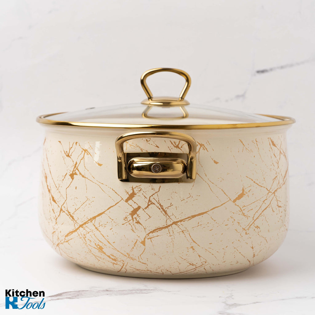 - Material de calitate superioară: Cratița este confecționată din email, asigurând durabilitate și rezistență în timp. Mânerele cromate adaugă un aspect elegant și permit o manipulare ușoară și confortabilă.