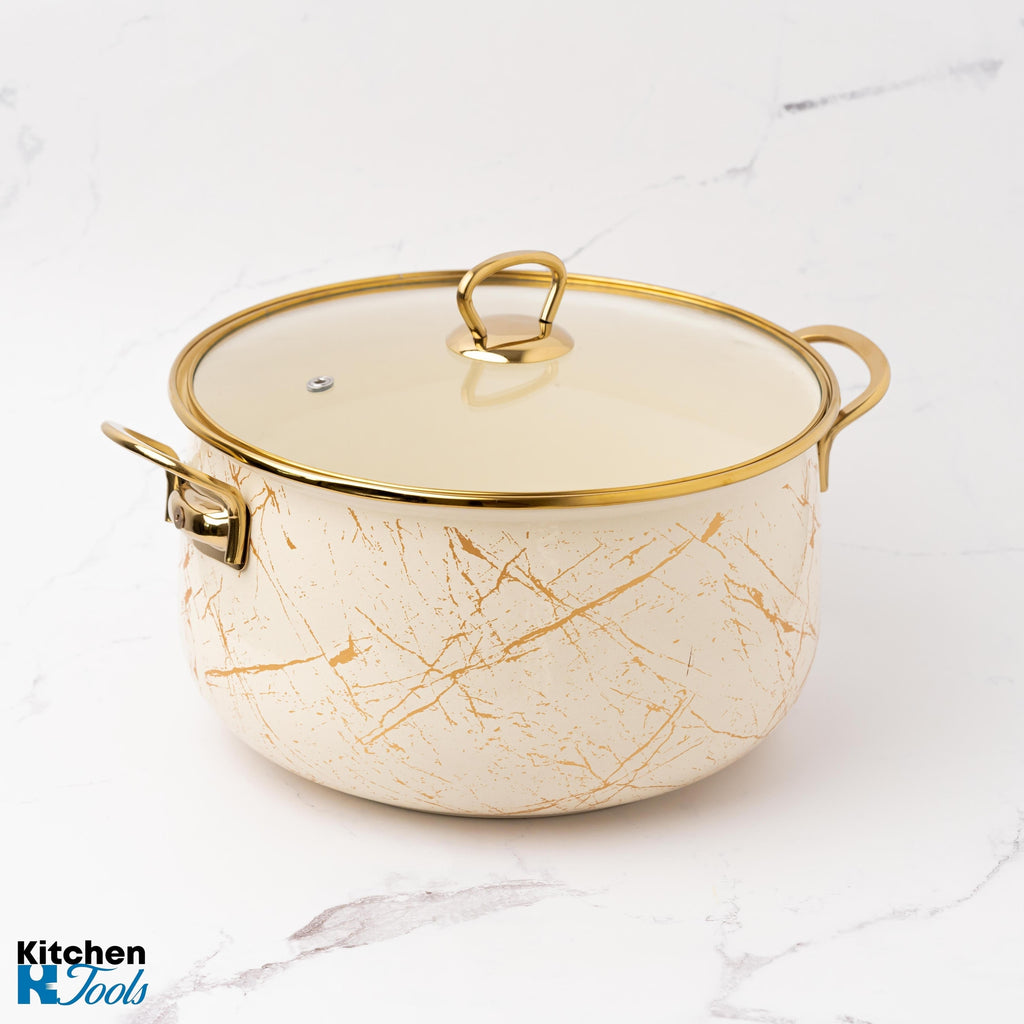Descoperă o bucătărie plină de eleganță și funcționalitate cu cratița emailată cu mânere cromate, disponibilă acum în magazinul nostru online. Această cratiță pentru gătit îmbină designul clasic cu tehnologia modernă, oferindu-ți o experiență culinară de excepție.