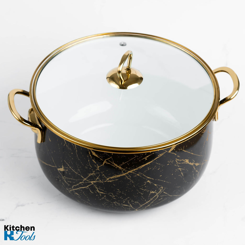 - Capac din sticlă termorezistentă: Setul include un capac din sticlă termorezistentă, care permite monitorizarea preparatelor fără a fi nevoie să îl ridici. Astfel, se păstrează aroma și nutrienții alimentelor, garantând rezultate delicioase.