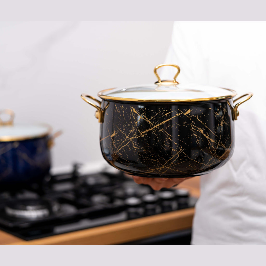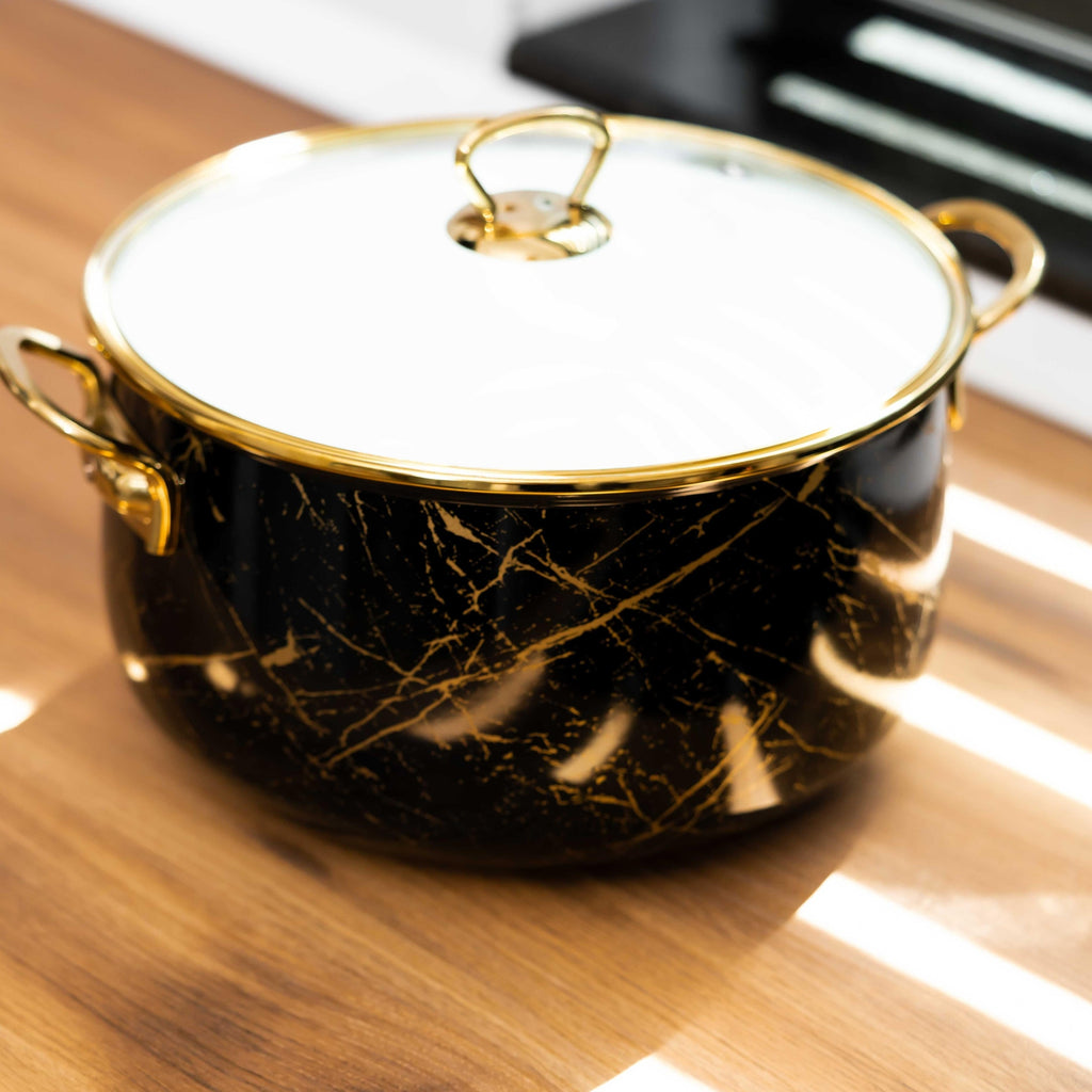 - Material de calitate superioară: Cratița este confecționată din email, asigurând durabilitate și rezistență în timp. Mânerele cromate adaugă un aspect elegant și permit o manipulare ușoară și confortabilă.