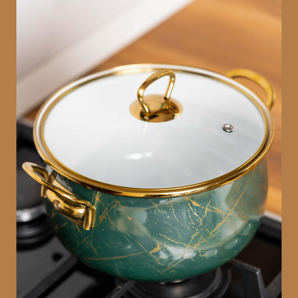 - Capac din sticlă termorezistentă: Setul include un capac din sticlă termorezistentă, care permite monitorizarea preparatelor fără a fi nevoie să îl ridici. Astfel, se păstrează aroma și nutrienții alimentelor, garantând rezultate delicioase.
