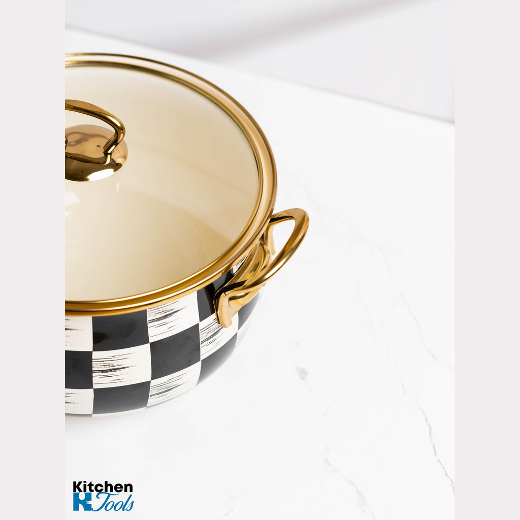 Descoperă o bucătărie plină de eleganță și funcționalitate cu cratița emailată cu mânere cromate, disponibilă acum în magazinul nostru online. Această bijuterie pentru gătit îmbină designul clasic cu tehnologia modernă, oferindu-ți o experiență culinară de excepție.