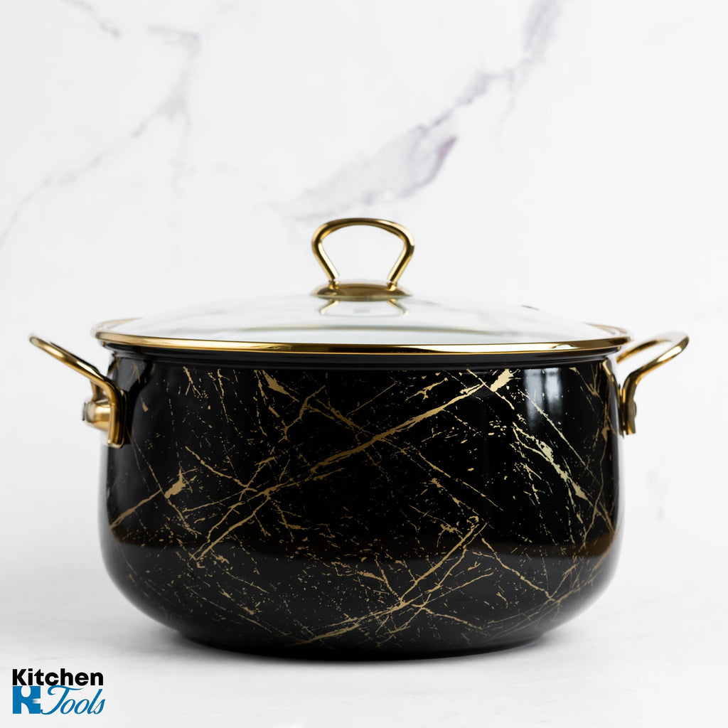 - Material de calitate superioară: Cratița este confecționată din email, asigurând durabilitate și rezistență în timp. Mânerele cromate adaugă un aspect elegant și permit o manipulare ușoară și confortabilă.