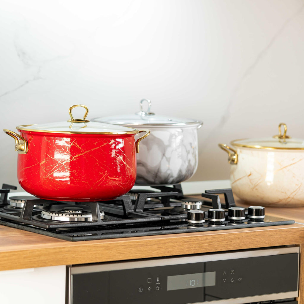 - Material de calitate superioară: Cratița este confecționată din email, asigurând durabilitate și rezistență în timp. Mânerele cromate adaugă un aspect elegant și permit o manipulare ușoară și confortabilă.