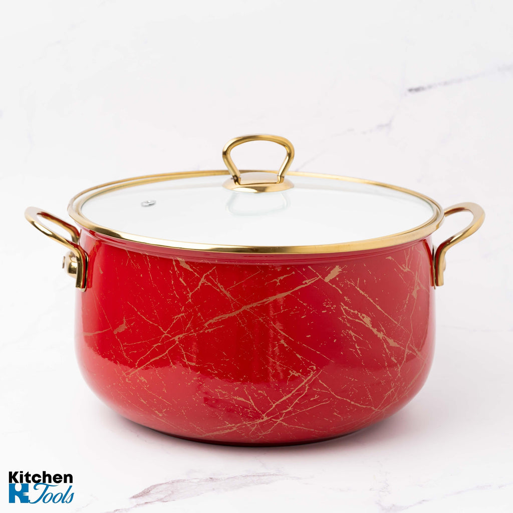 Descoperă o bucătărie plină de eleganță și funcționalitate cu cratița emailată cu mânere cromate, disponibilă acum în magazinul nostru online. Această cratiță îmbină designul clasic cu tehnologia modernă, oferindu-ți o experiență culinară de excepție.