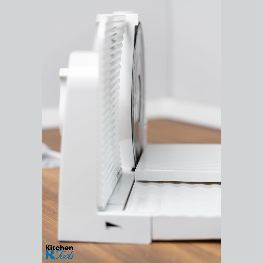 - Împingător de alimente transparent, cu protecție la tăiere