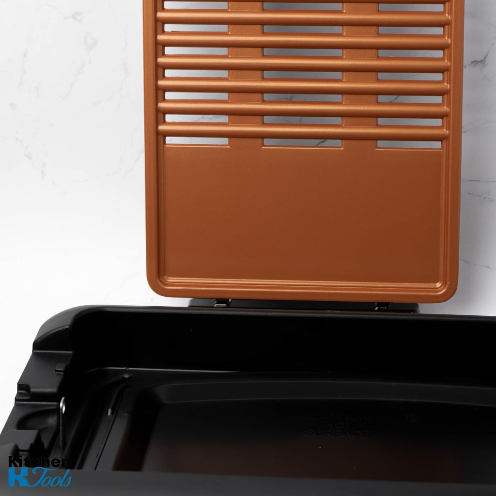 Cu tava pentru colectarea excesului de ulei sau grăsime, gătitul devine mai sănătos și mai curat.