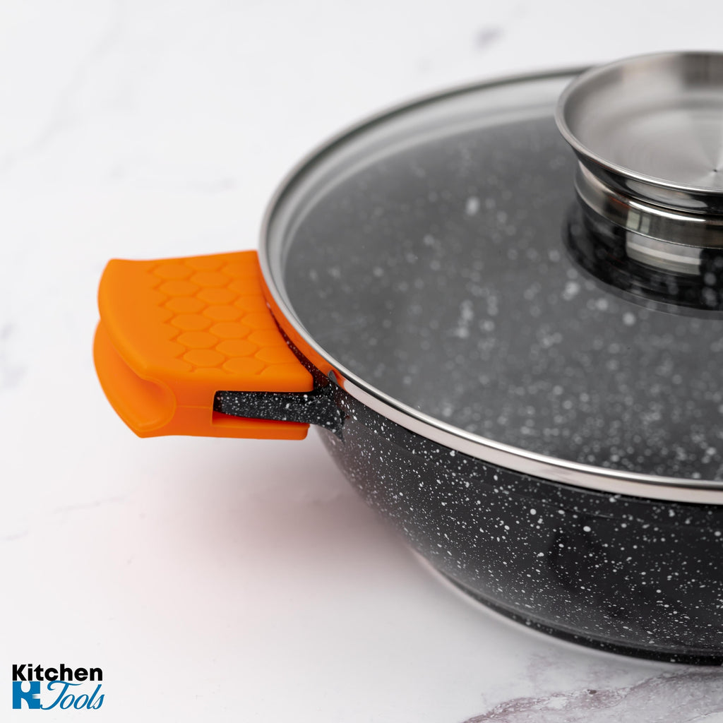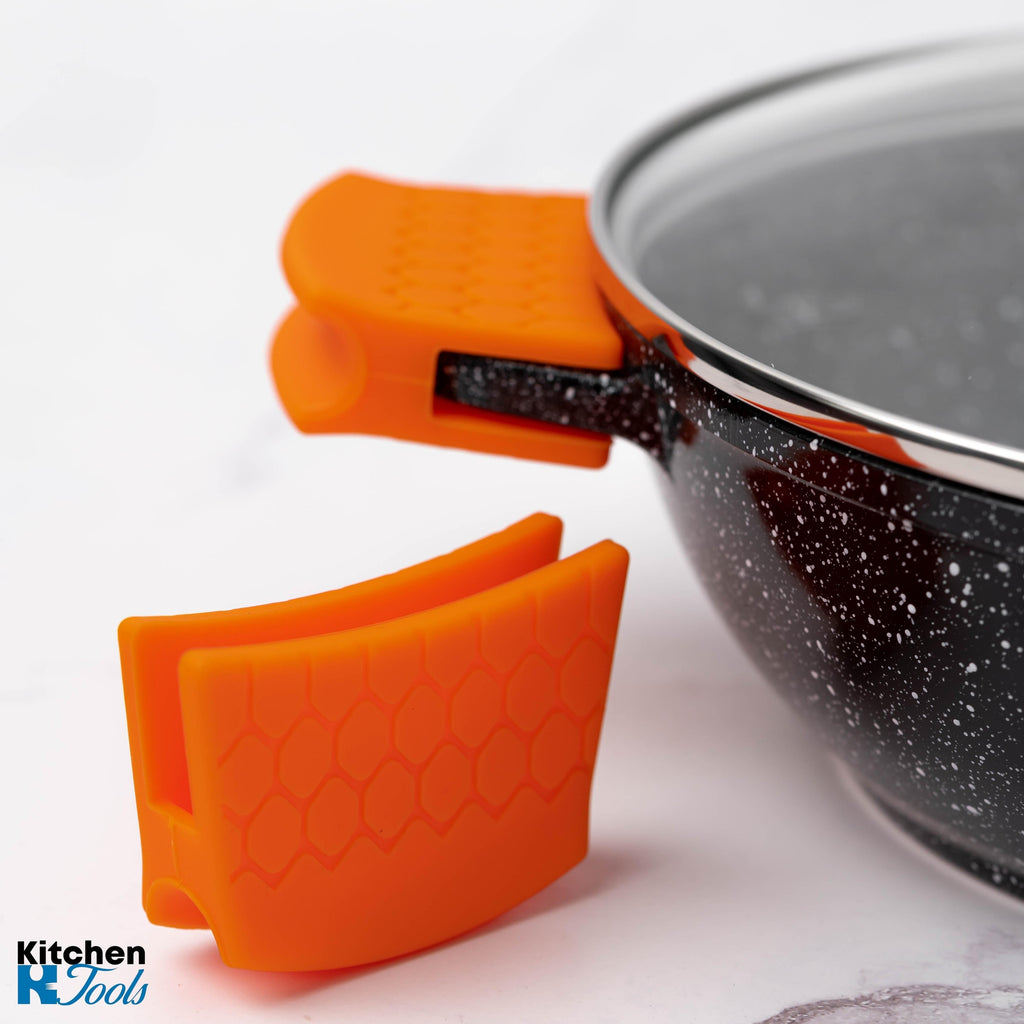 - Prevenirea arsurilor: Mânerele din silicon sunt izolatoare termice eficiente, oferindu-vă o barieră protectoare împotriva temperaturilor înalte. Nu vă mai faceți griji cu privire la arsurile accidentale atunci când manevrați oalele sau cratițele încălzite.