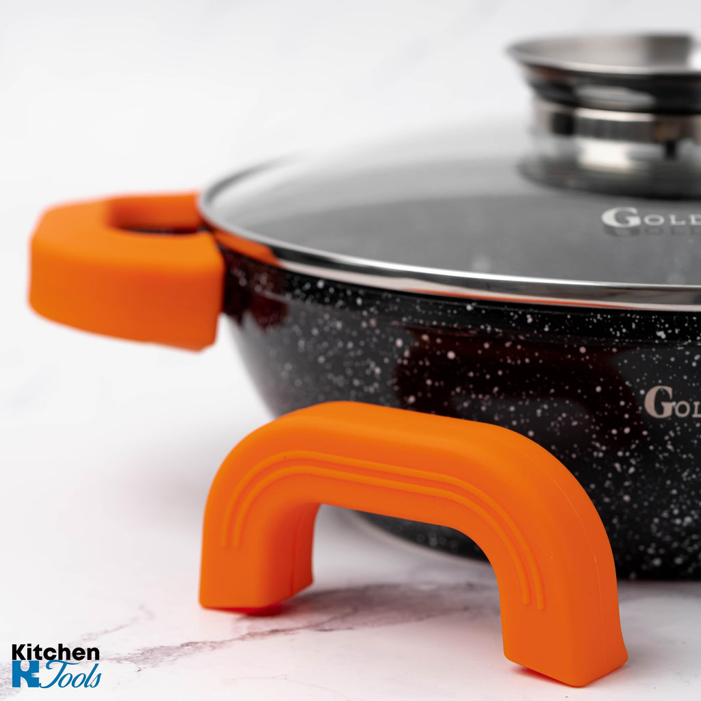 - Prevenirea arsurilor: Mânerele din silicon sunt izolatoare termice eficiente, oferindu-vă o barieră protectoare împotriva temperaturilor înalte. Nu vă mai faceți griji cu privire la arsurile accidentale atunci când manevrați oalele sau cratițele încălzite.