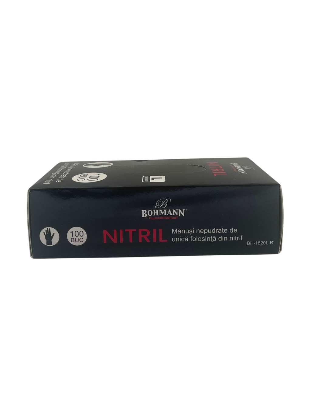 Mănuși din nitril 100% nepudrate, nesterile, de unică folosință, 100 buc/set, negre, greutate: 4,50 g
