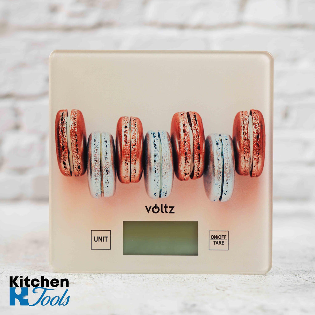Mini cantar de bucatarie Voltz, sticla, max 5kg, Macarons