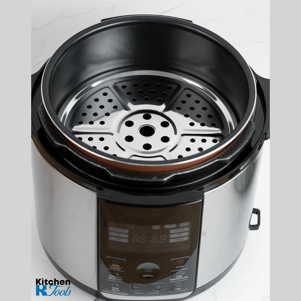 Dotat cu o capacitate impresionantă de 6 litri, acest multicooker nu face compromisuri când vine vorba de performanță. Oala interioară cu înveliș antiaderent facilitează gătitul și curățarea ulterioară, asigurându-ți că preparatele tale vor fi gata într-un timp scurt, fără bătăi de cap.