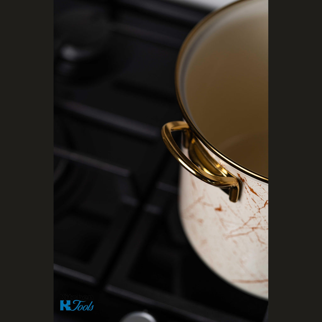 Descoperă echilibrul perfect între funcționalitate și rafinament cu oala emailată cu mânere titan, disponibilă acum!