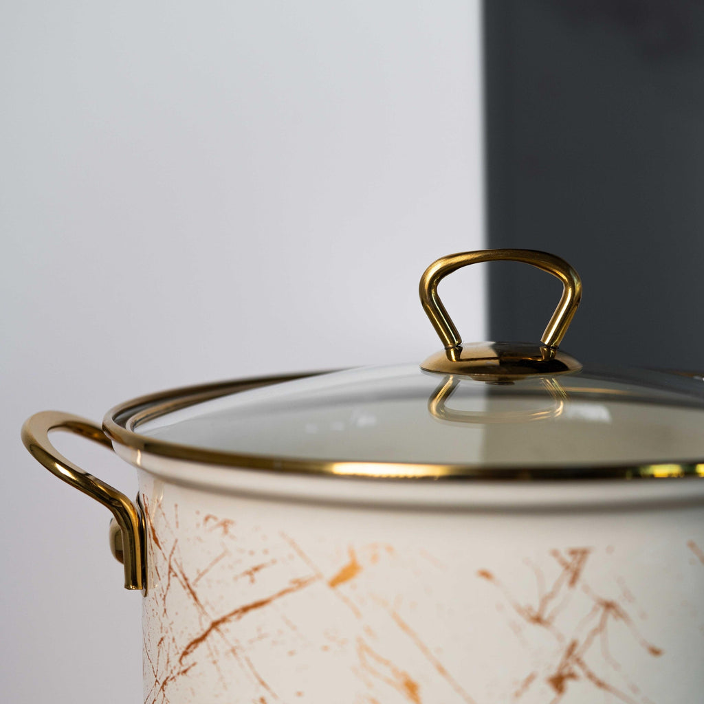 - Material de calitate superioară: Oala este realizată din email durabil, recunoscut pentru rezistența sa în timp și ușurința în întreținere. Mânerele cu finisaj titan adaugă un plus de eleganță și confort la utilizare.