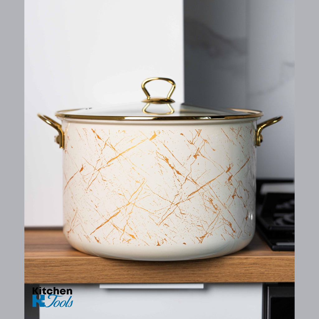 Descoperă echilibrul perfect între funcționalitate și rafinament cu oala emailată cu mânere titan.