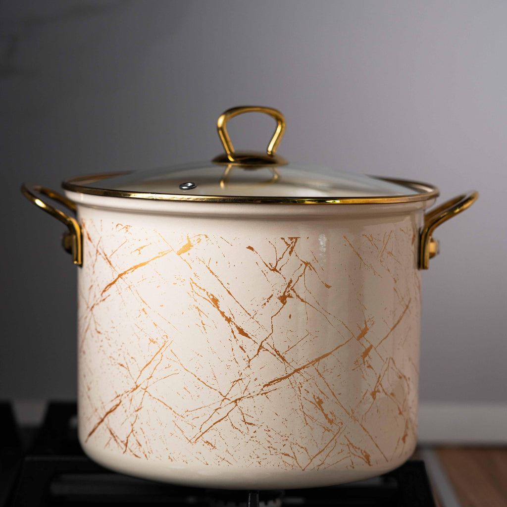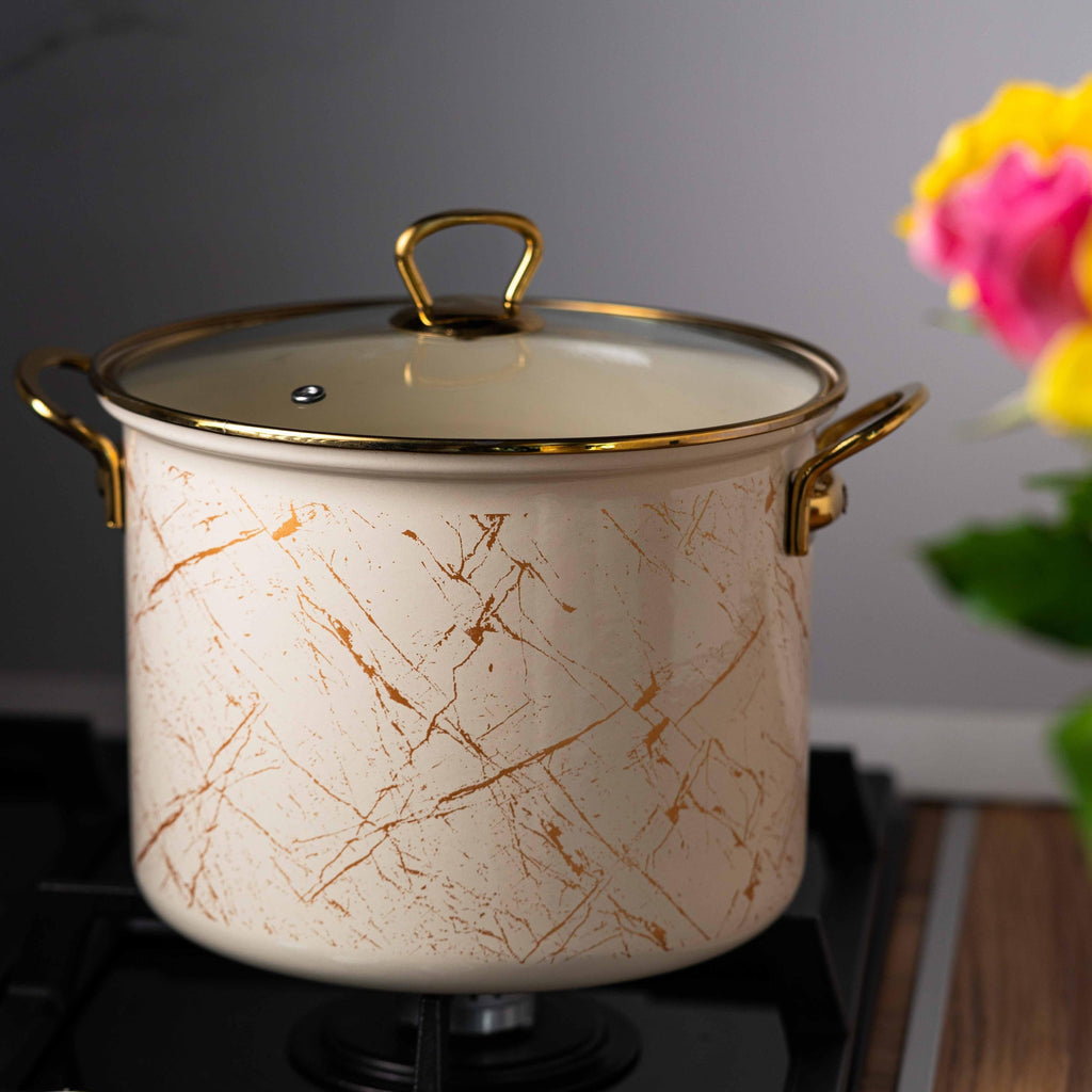 - Material de calitate superioară: Oala este realizată din email durabil, recunoscut pentru rezistența în timp și ușurința în întreținere. Mânerele cu finisaj titan adaugă un plus de eleganță și confort la utilizare.