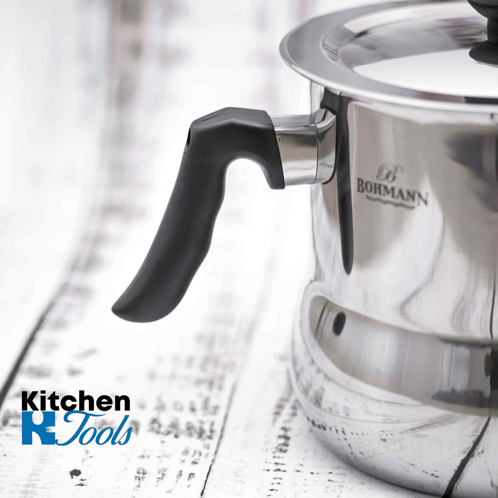 Oala lapte Bohmann 3 l, inox, capac, fluier. Acum poți fierbe laptele fără ca acesta să se prindă de pereții vasului. Oala de lapte Bohmann este special concepută pentru a fierbe laptele, dar și pentru prepararea cremelor pretențioase, gemurilor, dulcețurilor sau a alimentelor la bain-marie.