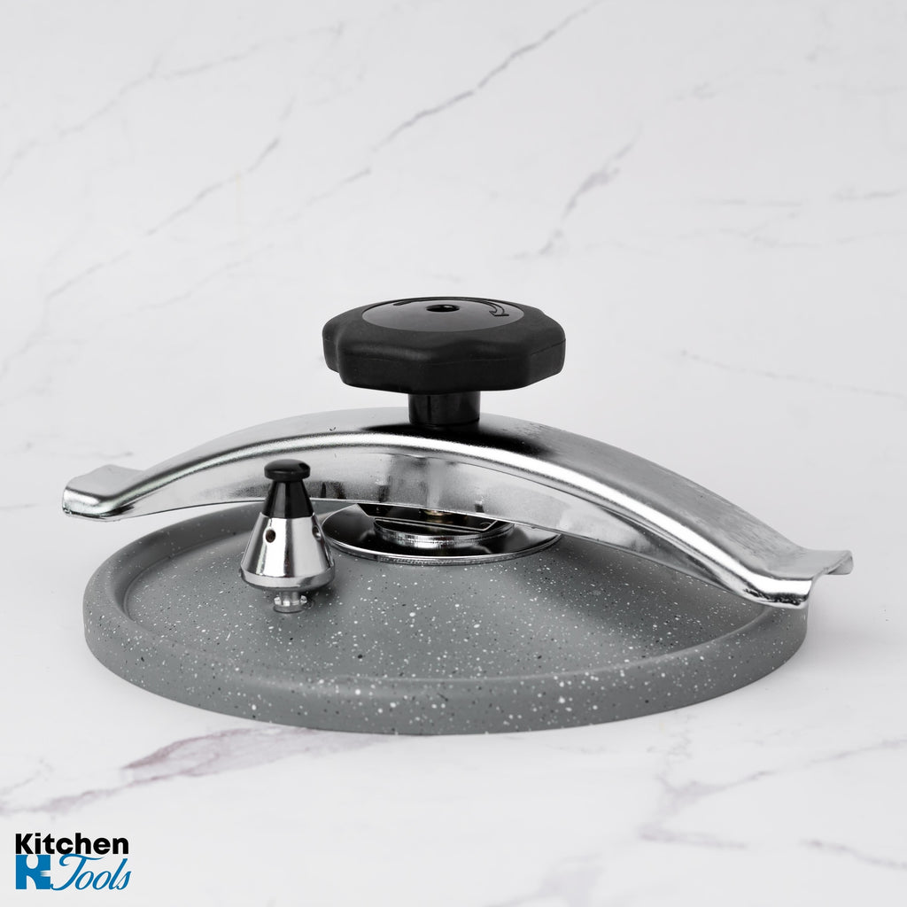 - Material de înaltă calitate: Oala sub presiune este fabricată din aluminiu de înaltă calitate, garantând durabilitate și conductivitate termică excelentă. Nu conține substanțe chimice PFOA, asigurând siguranța alimentelor preparate.