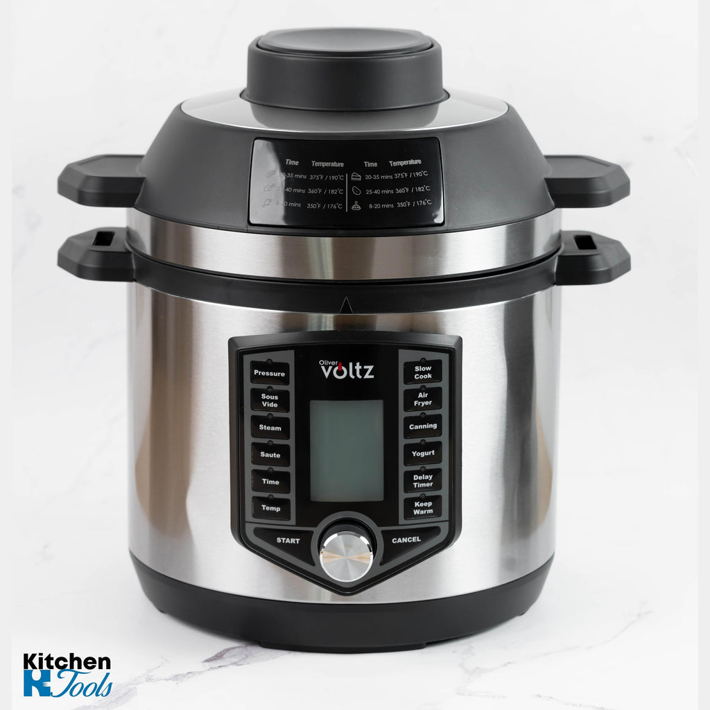 Transformă modul în care gătești cu Duet, un aparat multifuncțional care combină puterea unei oale sub presiune cu eficiența unei friteuze cu aer cald. Un singur dispozitiv, zeci de funcții, zero compromisuri.