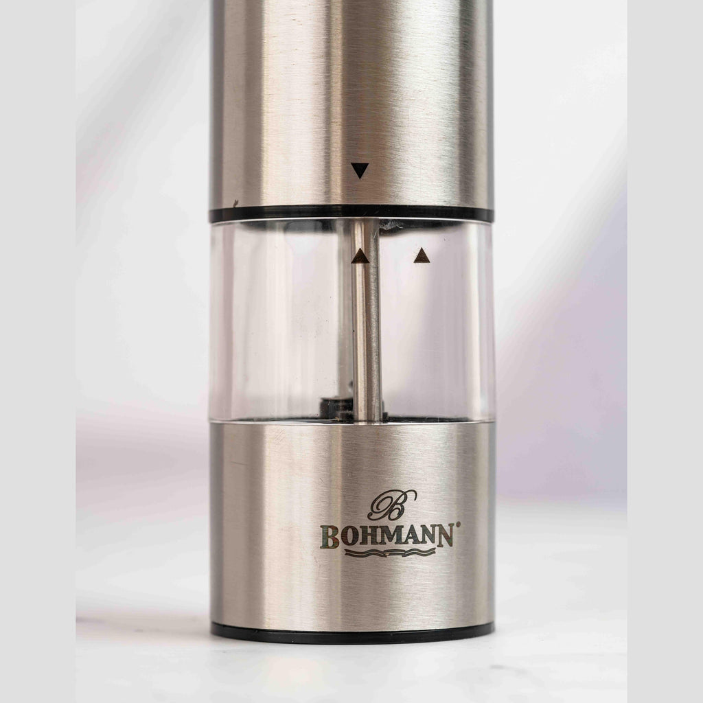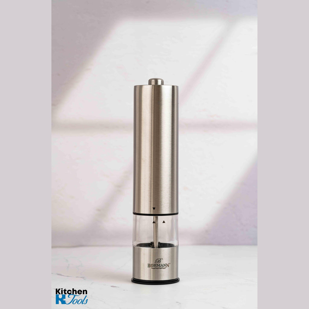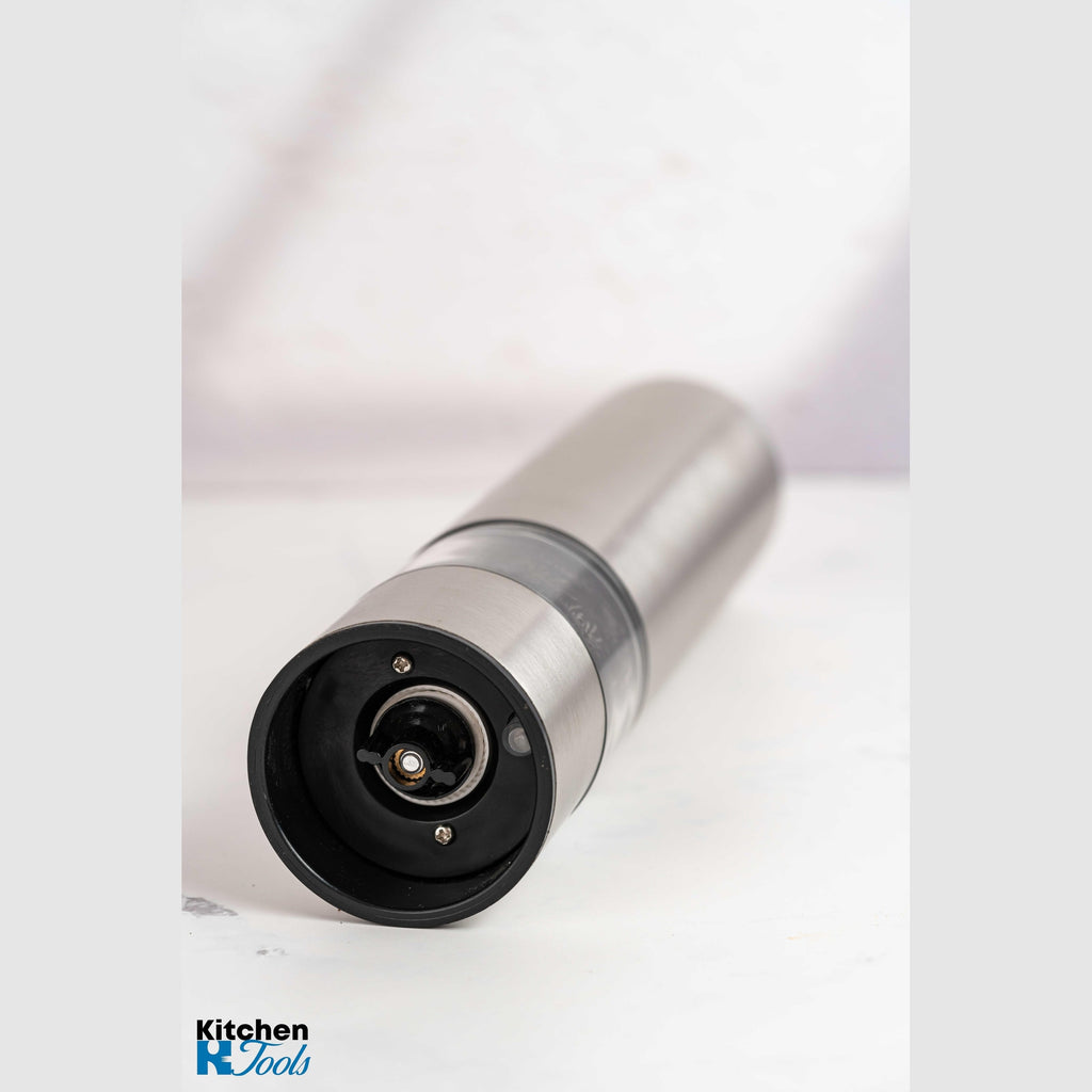 Funcționează cu 4 baterii AA și este echipată cu un bec în partea de jos, pentru a ilumina condimentele. Compartimentul transparent vă permite să vedeți cantitatea de condimente rămasă.