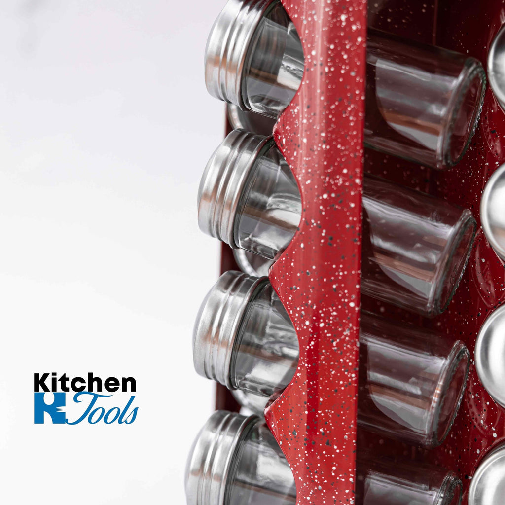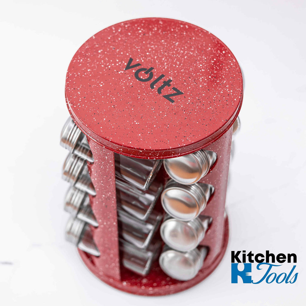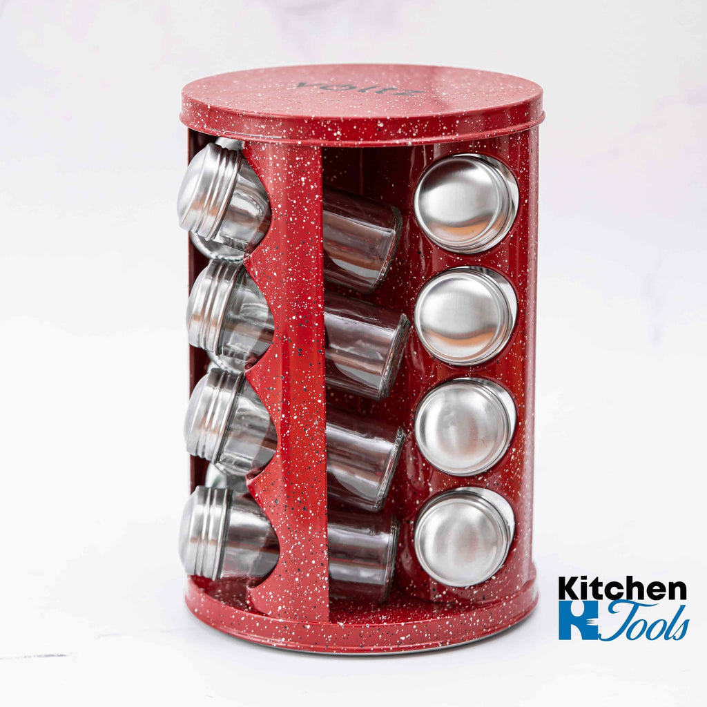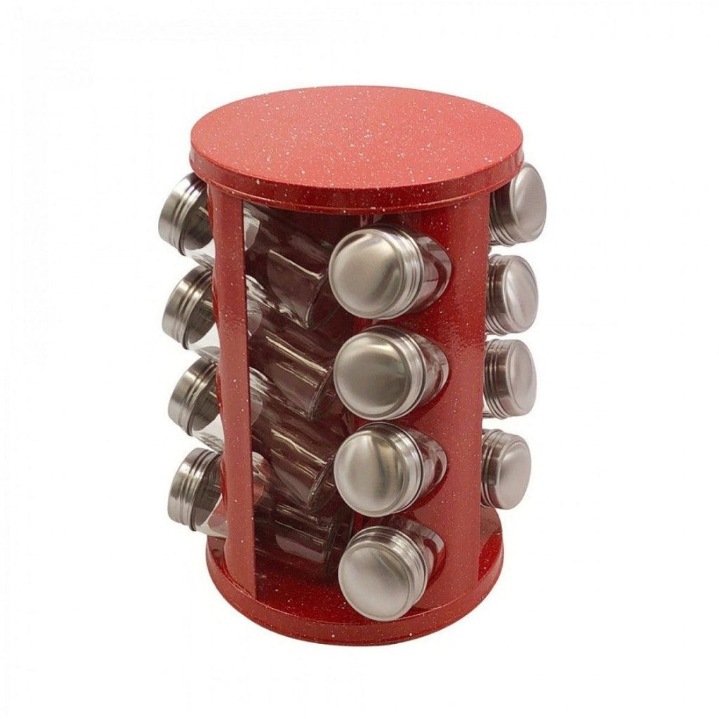 Set condimente rotativ, 16 recipiente, rosu-marmorat
