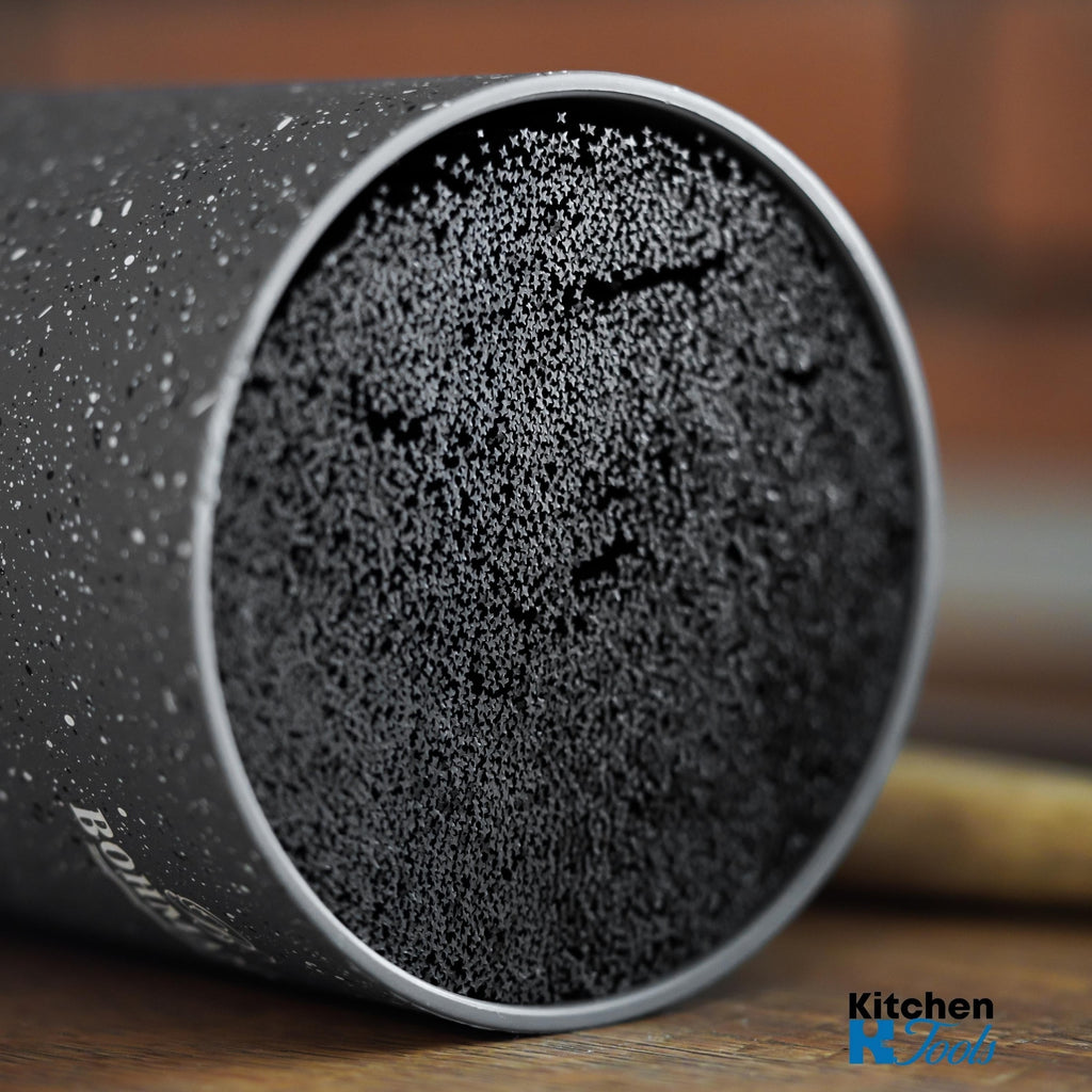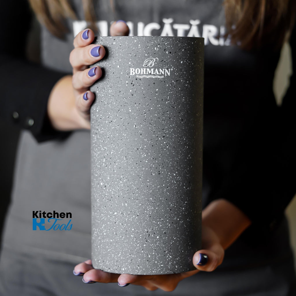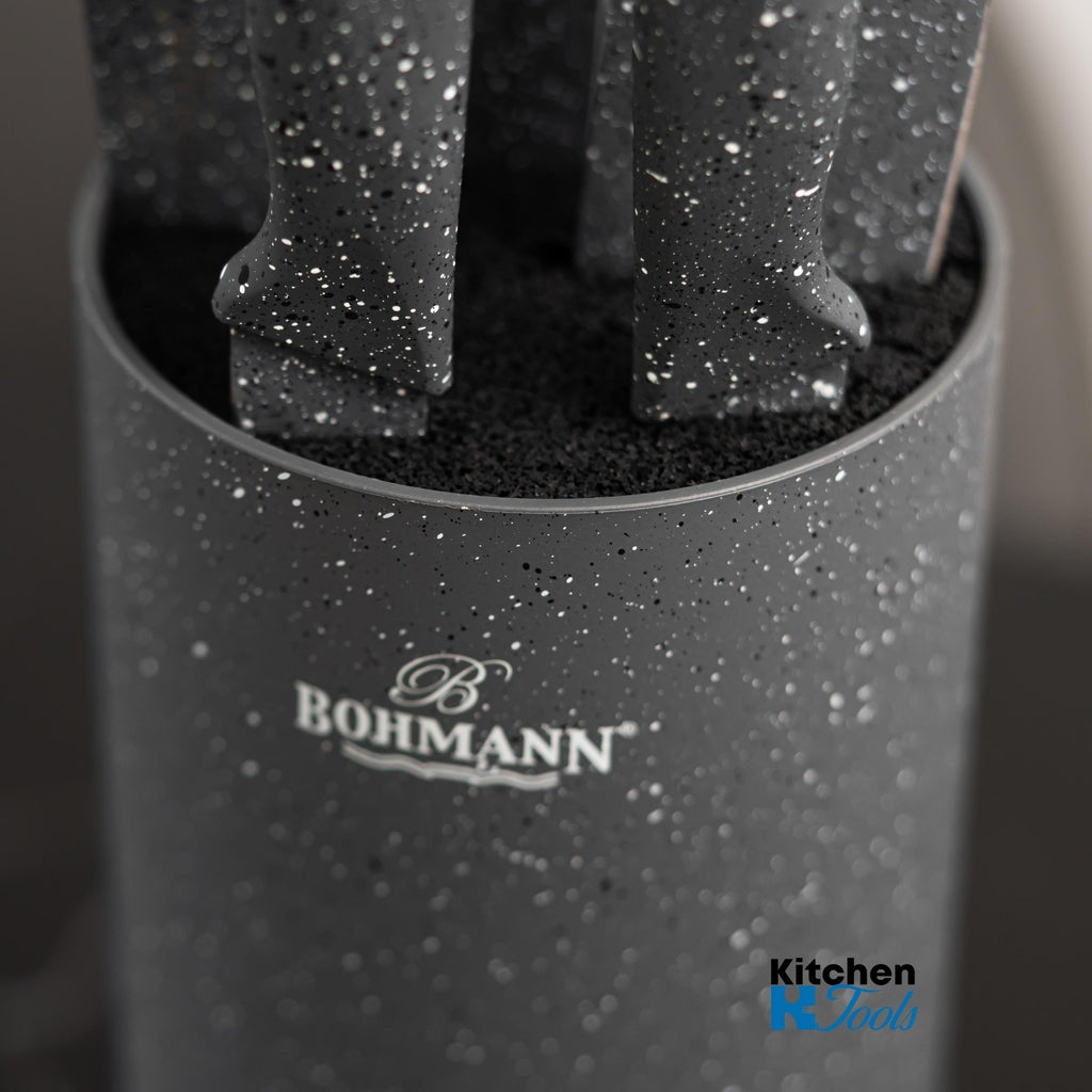 Set de cuțite: 6 piese Bohmann, lame gri marmorate, stand rotund, gri