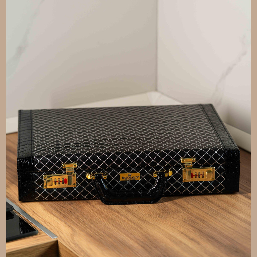 - Servietă din piele neagră pentru păstrare sigură și transport elegant