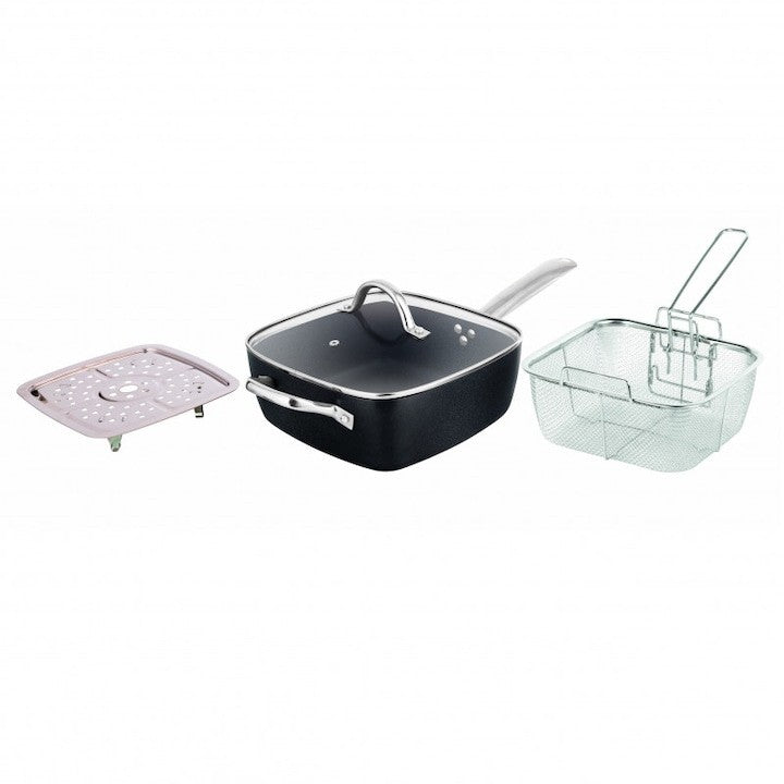 Nu mai aștepta. Transformă fiecare experiență culinară într-o aventură plină de gusturi și arome cu setul nostru de tigăi tip friteuză. Odată ce o încerci, nu vei mai vrea să renunți la ea.