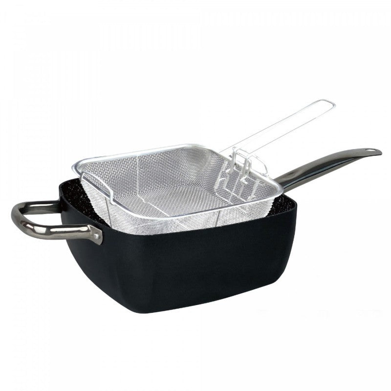 Cu acest set de tigăi tip friteuză primești tot ceea ce ai nevoie pentru a te lăsa inspirat în bucătărie: tigaia propriu-zisă, coș pentru prăjit și suport metalic aferent. Ai toate uneltele necesare pentru a-i cuceri pe cei dragi cu preparate apetisante.