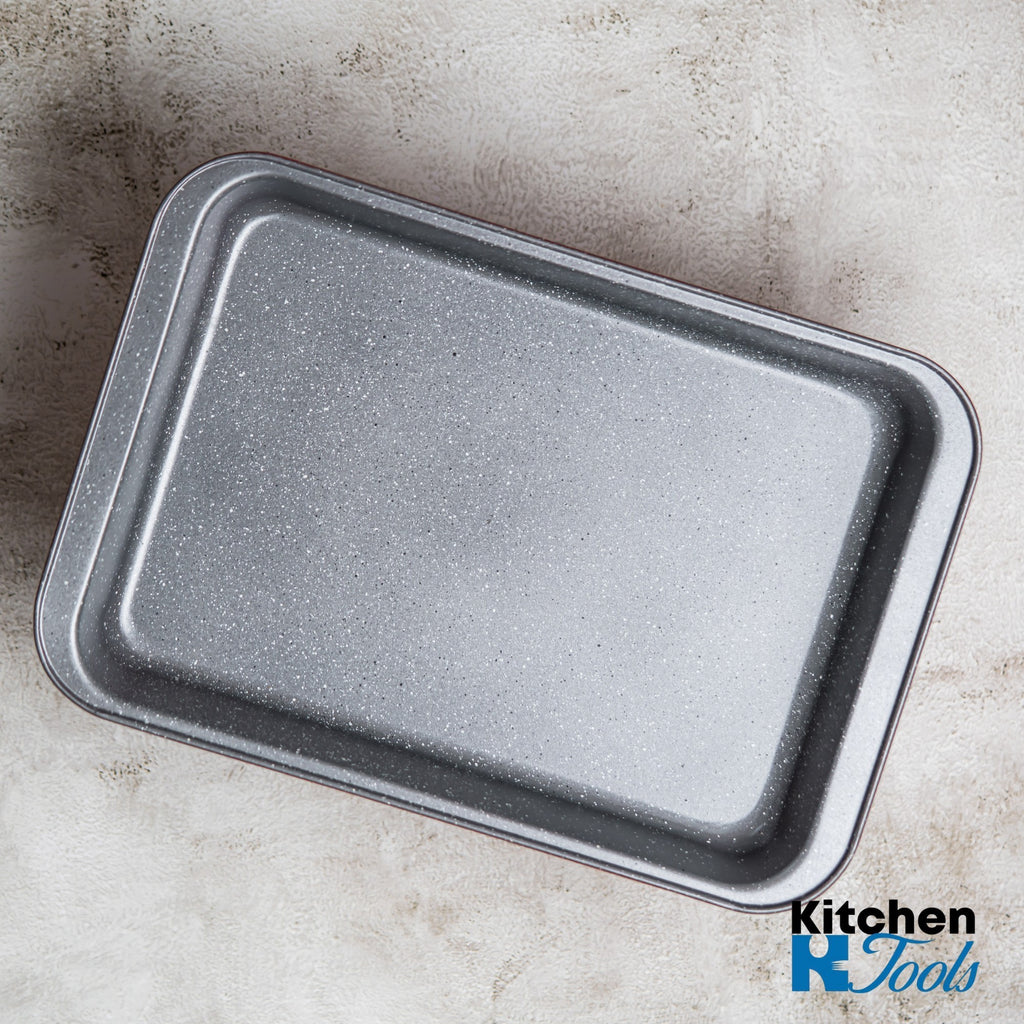 Tavă de copt din oțel carbon, antiaderentă, cu finisaj măr-murat la interior și exterior, ușor de curățat și de utilizat.