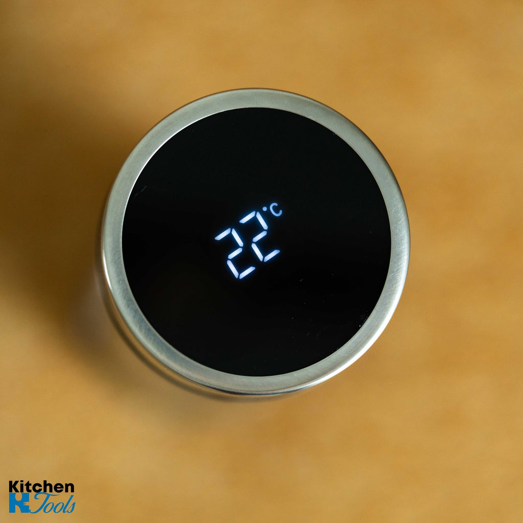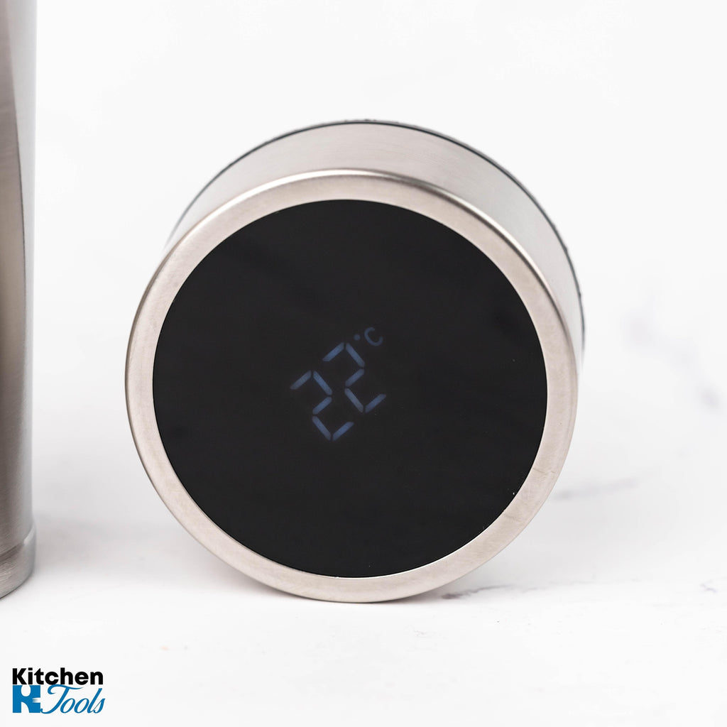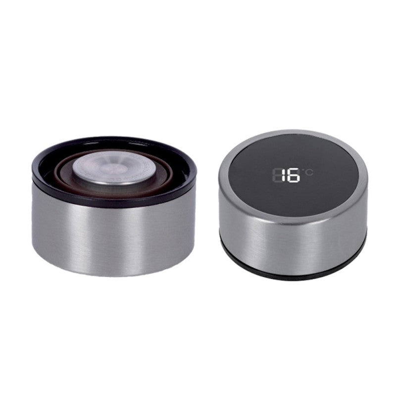 Designul elegant și finisajul din inox fac acest termos nu doar util, ci și atrăgător din punct de vedere estetic, fiind potrivit atât pentru călătorii, cât și pentru utilizarea de zi cu zi. Capacul termosului include o baterie nedetașabilă, cu o durată de viață de 3 ani de la momentul fabricării. După epuizarea bateriei, capacul cu baterie poate fi achiziționat separat, asigurând astfel o utilizare continuă a termosului.