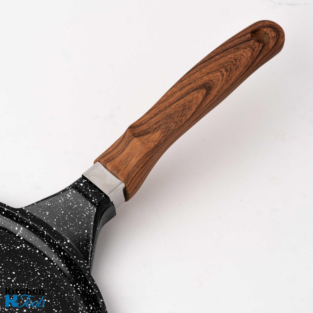 - Material de calitate: Fabricată din aluminiu turnat, tigaia este durabilă și rezistentă la uzură.