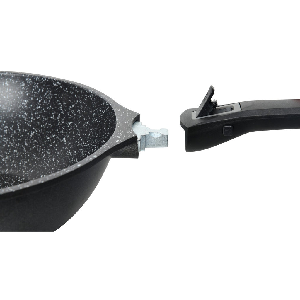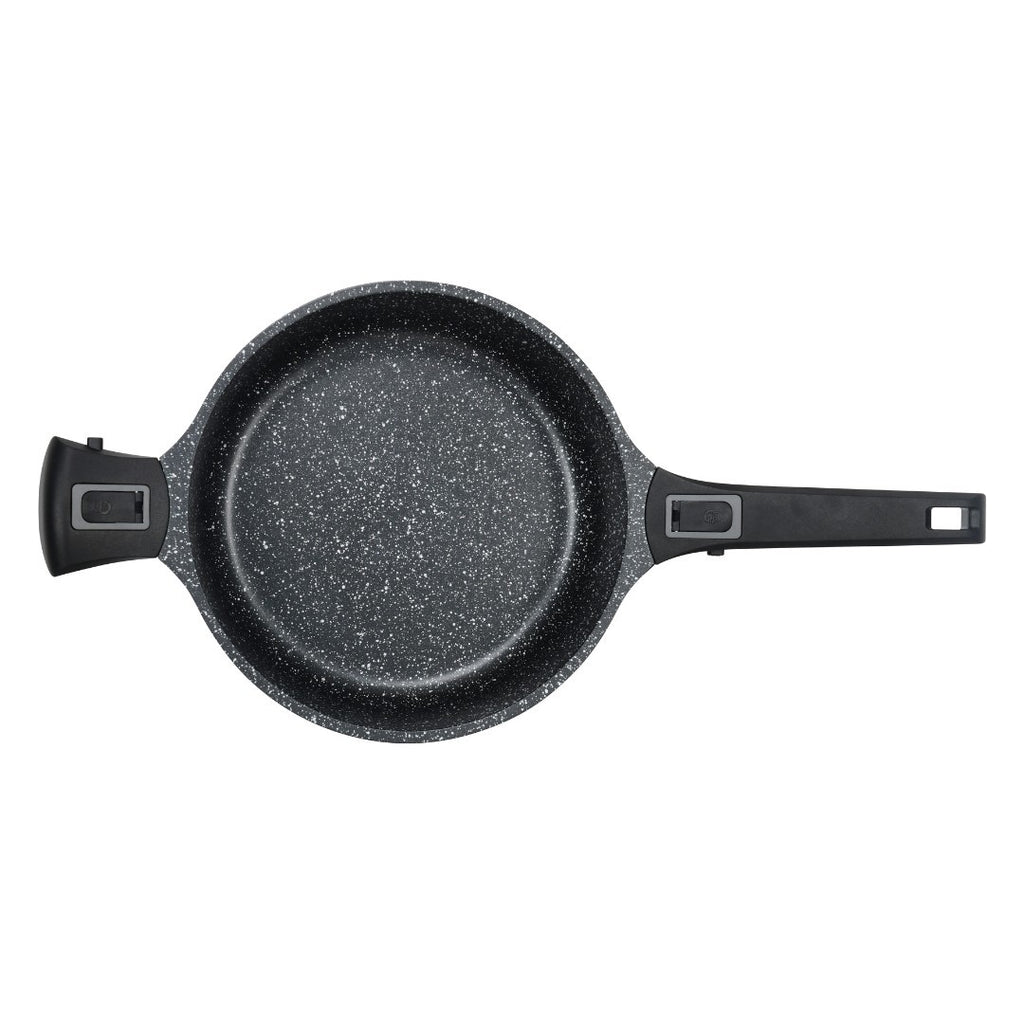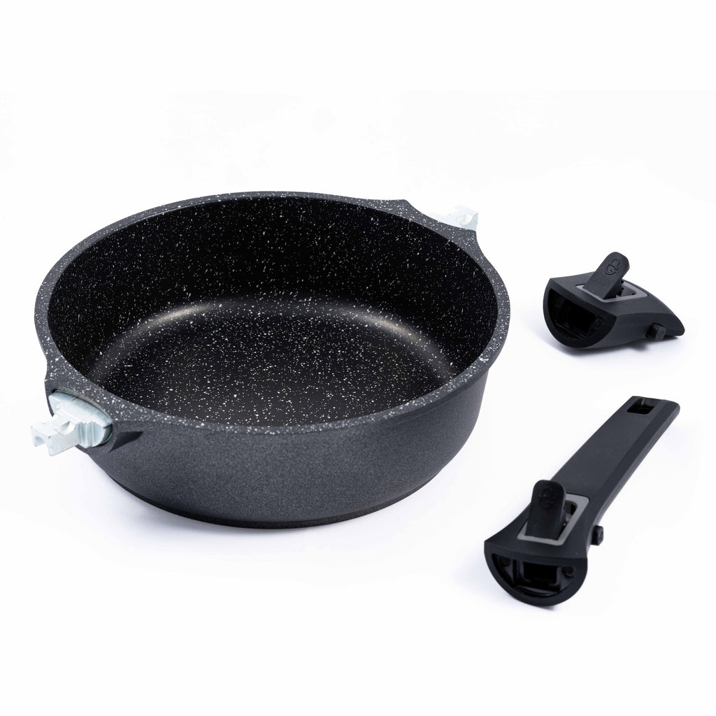 - Mânere Detasabile pentru Confort Maxim: Mânerele detasabile sunt concepute pentru a vă oferi flexibilitate în timpul procesului de gătit. Această funcționalitate vă permite să transferați tigaia direct de pe plită la masă sau să o depozitați în spațiile restrânse cu ușurință.