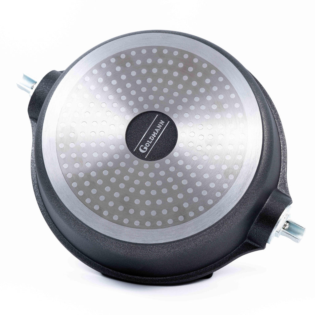 Descoperiți plăcerea gătitului fără stres cu tigaia noastră din aluminiu turnat, un instrument esențial pentru fiecare bucătărie modernă. Cu caracteristici inovatoare și design funcțional, această tigaie este creată pentru a vă oferi rezultate culinare excepționale pe toate tipurile de plite, inclusiv plitele cu inducție. Manerele detasabile și suprafața antiaderentă adaugă o notă de confort și ușurință în fiecare etapă a procesului de gătit.