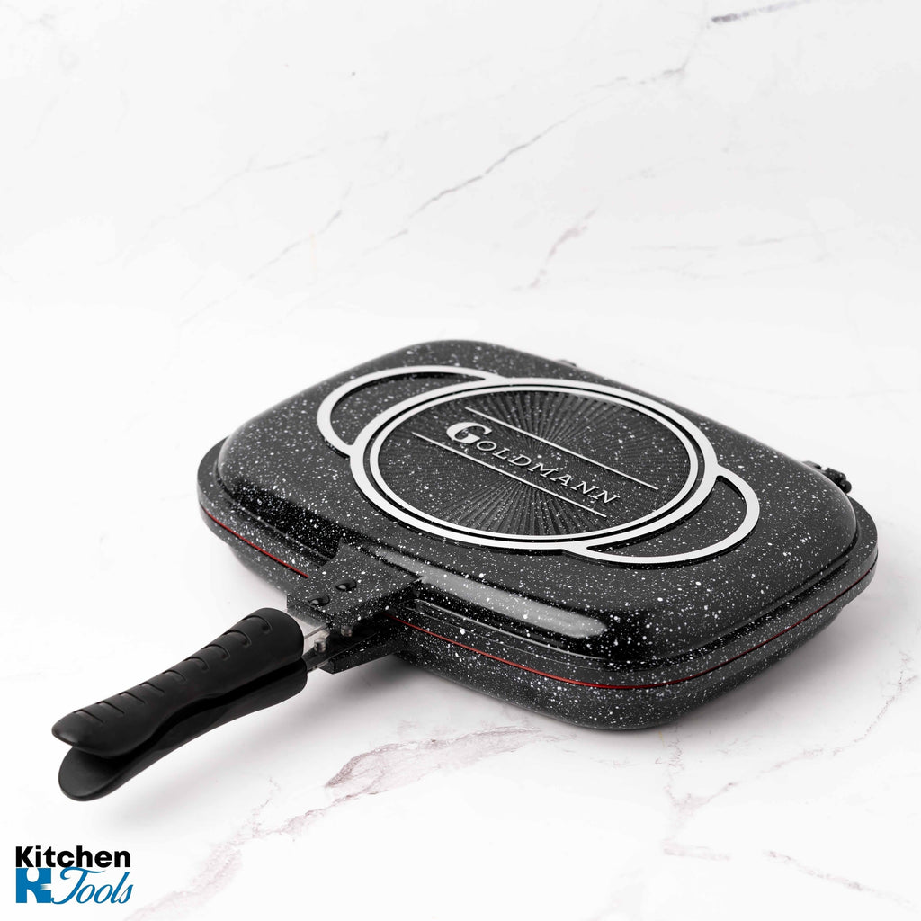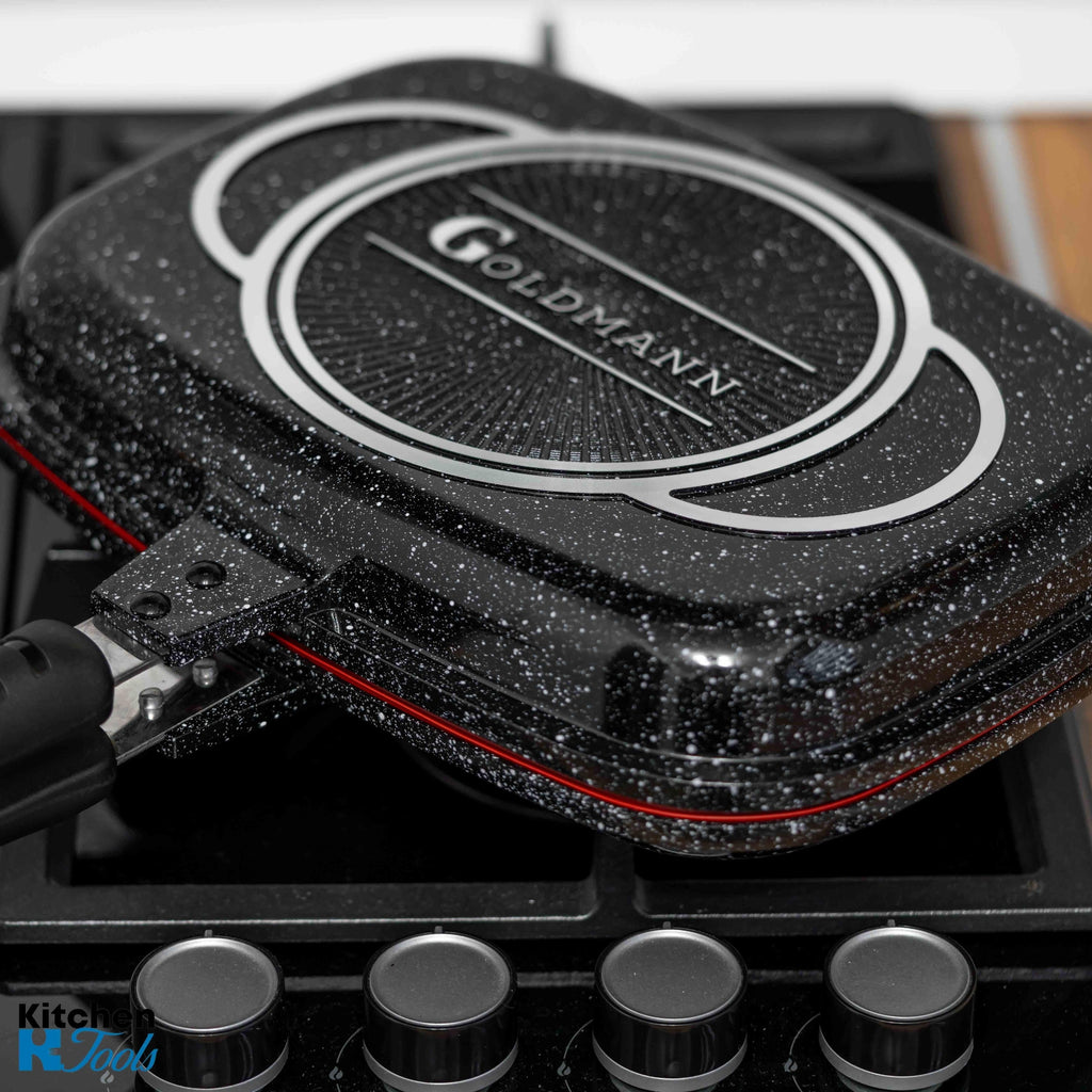 Tigaie grill dublă Goldmann – 36 cm, aluminiu negru