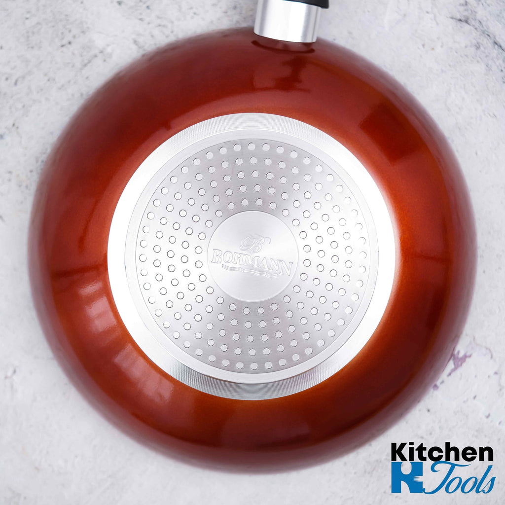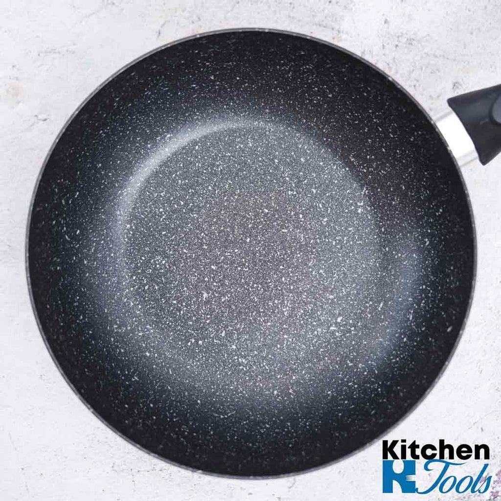 Corpul din aluminiu, cu o grosime de 2,5 mm, asigură o încălzire rapidă și o distribuție termică uniformă, esențiale pentru gătirea „flash”, specifică wok-ului. Interiorul acoperit cu un strat marmorat (granit) de înaltă performanță oferă o antiaderență excelentă și permite gătirea cu mai puțin ulei.
