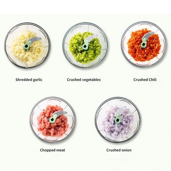 - Greutate Redusa si Compact: Design-ul compact si greutatea redusa fac acest tocatorr usor de manevrat si de stocat, ocupand putin spatiu in bucatarie. Poate fi folosit cu usurinta de catre oricine, indiferent de experienta in bucatarie.